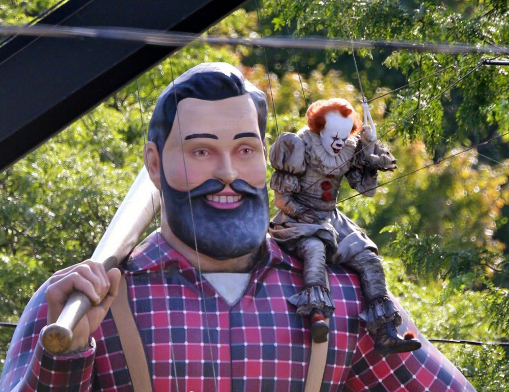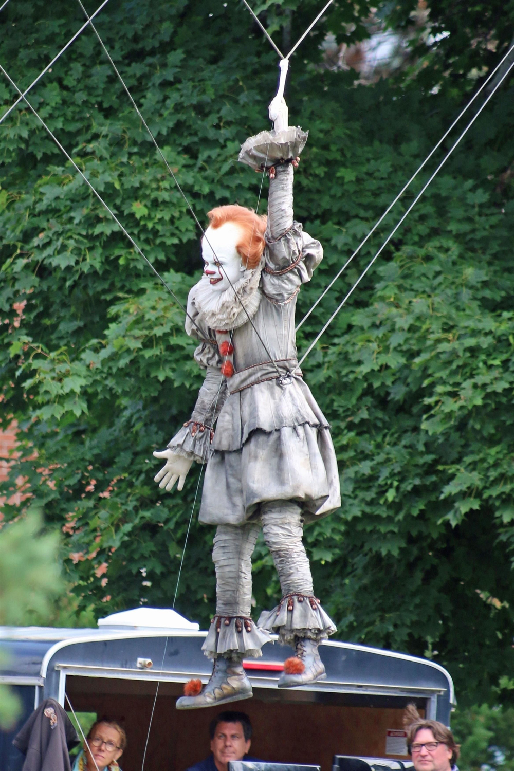 К роли жуткого клоуна вернулся Билл Скарсгард. Судя по тросам на слитых снимках, его герой в некоторых сценах будет летать:
