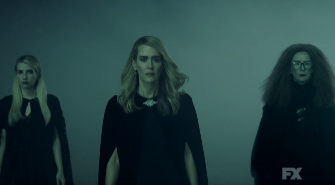 Этот трейлер - настоящий подарок для поклонников, ведь в нем появились яркие персонажи из прошлых сезонов. Например, Корделия Фокс (Сара Полсон), Зои Бенсон (Таисса Фармига), Миртл Сноу (Фрэнсис Конрой) и Мэдисон Монтгомери (Эмма Робертс) из «Шабаша», или же жуткий человек в латексном костюме из «Дома-убийцы».