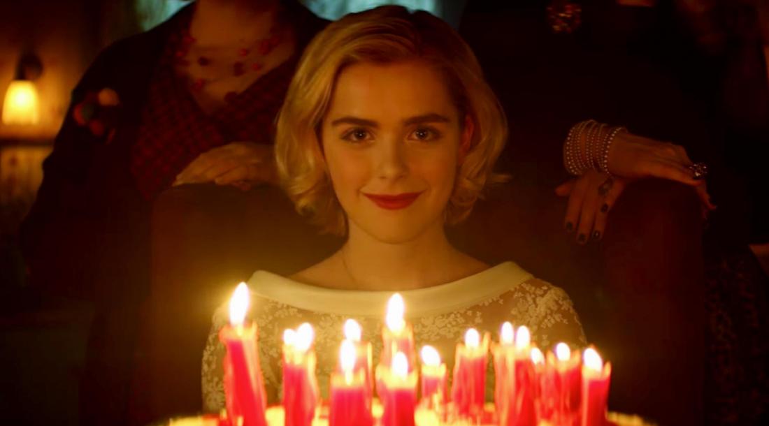 Как и обещали, все мрачно, оккультно и вовсе не мило и весело, как в комедийном сериале 1990-х. В коротком ролике нам показали, как Сабрина (Кирнан Шипка) задувает свечи на торте в честь своего дня рождения в окружении каких-то загадочных людей.