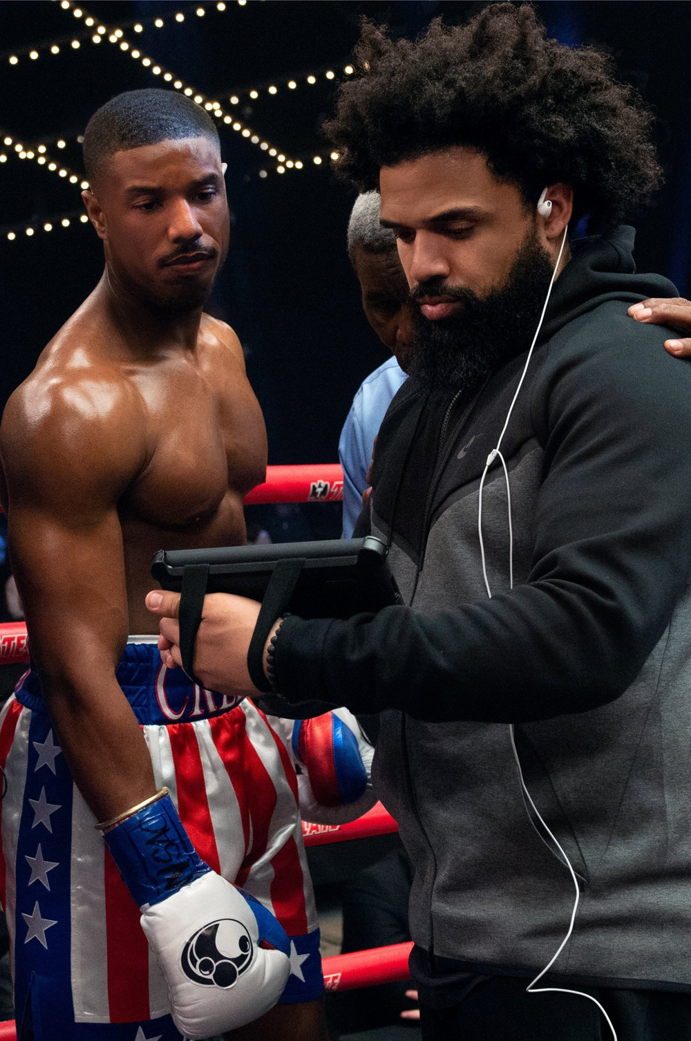 Новая серия снимков посвящена подготовке Адониса Крида (Майкл Б. Джордан) к битве. Нам показали и тренировки в зале, и непосредственный выход на ринг. Ну, а сопровождает бойца его легендарный тренер Рокки Бальбоа (Сильвестр Сталлоне).