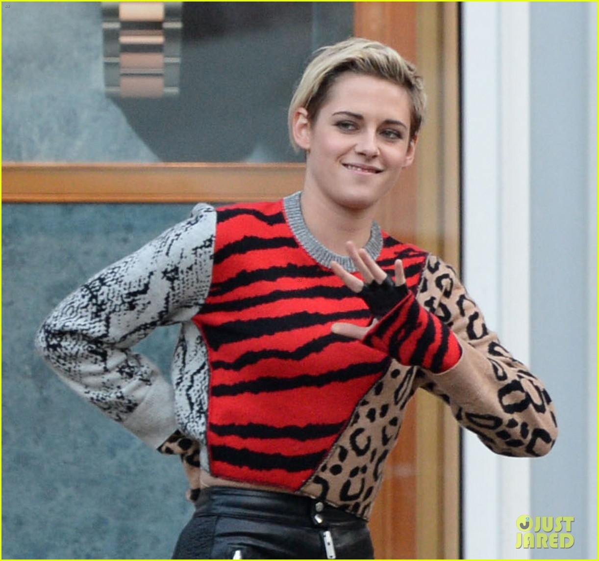 На кадрах Стюарт, облаченная в кожаные брюки и яркий свитер с леопардовым принтом, рассекает по улице с пистолетом в руке. В целом, образ «ангелочка» очень воинственный.
