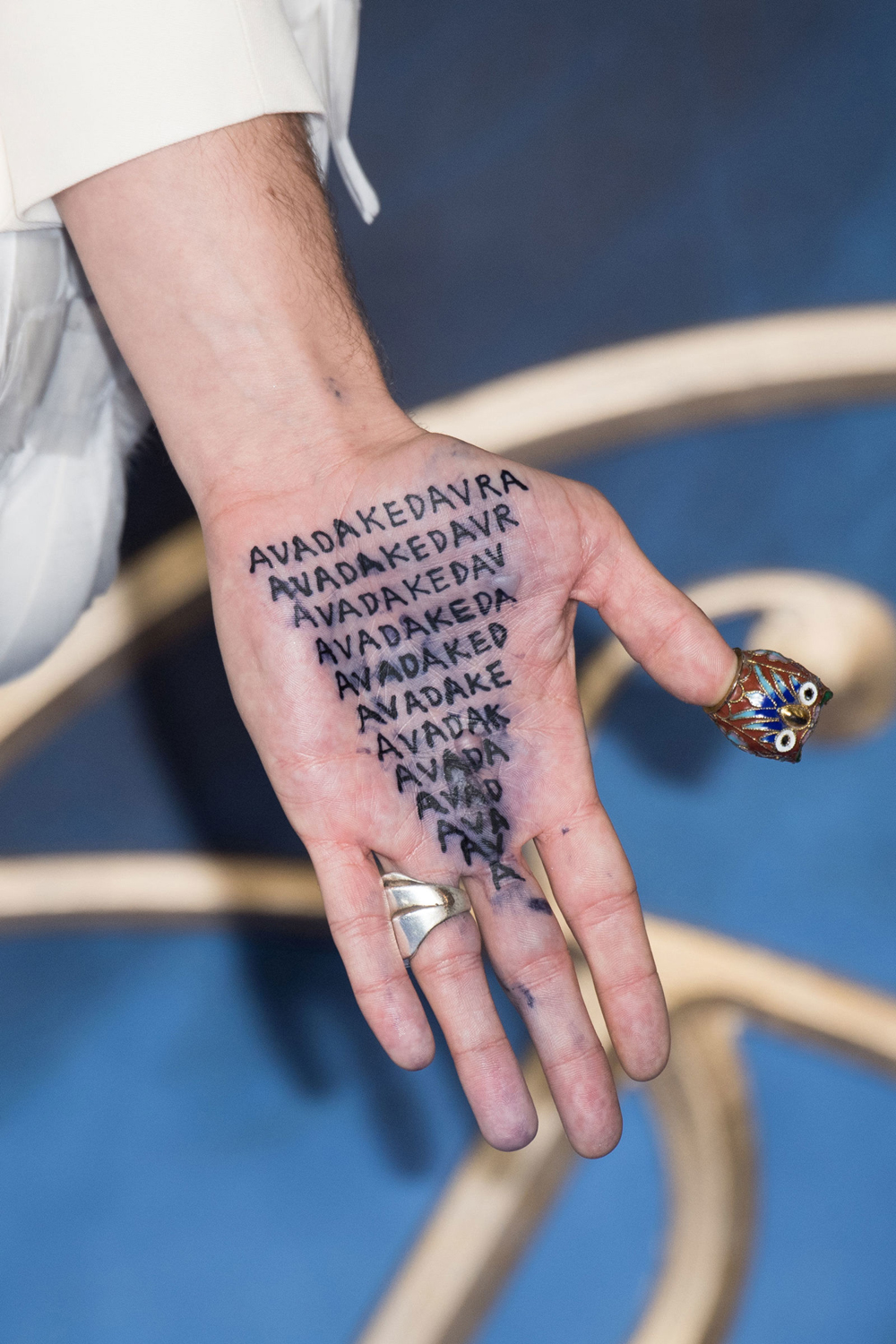 Более того, на ладонях у актера нанесено убивающее заклинание «Авада Кедавра»: