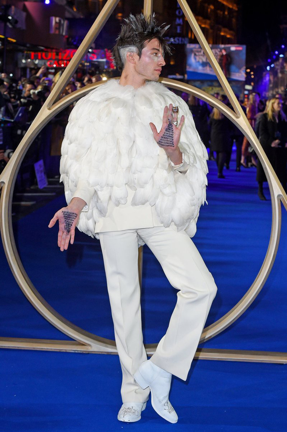 Вслед за парижской состоялась и лондонская премьера фильма «Фантастические твари: Преступления Грин-де-Вальда», и Эзра Миллер вновь порадовал публику своим образом для красной дорожки.