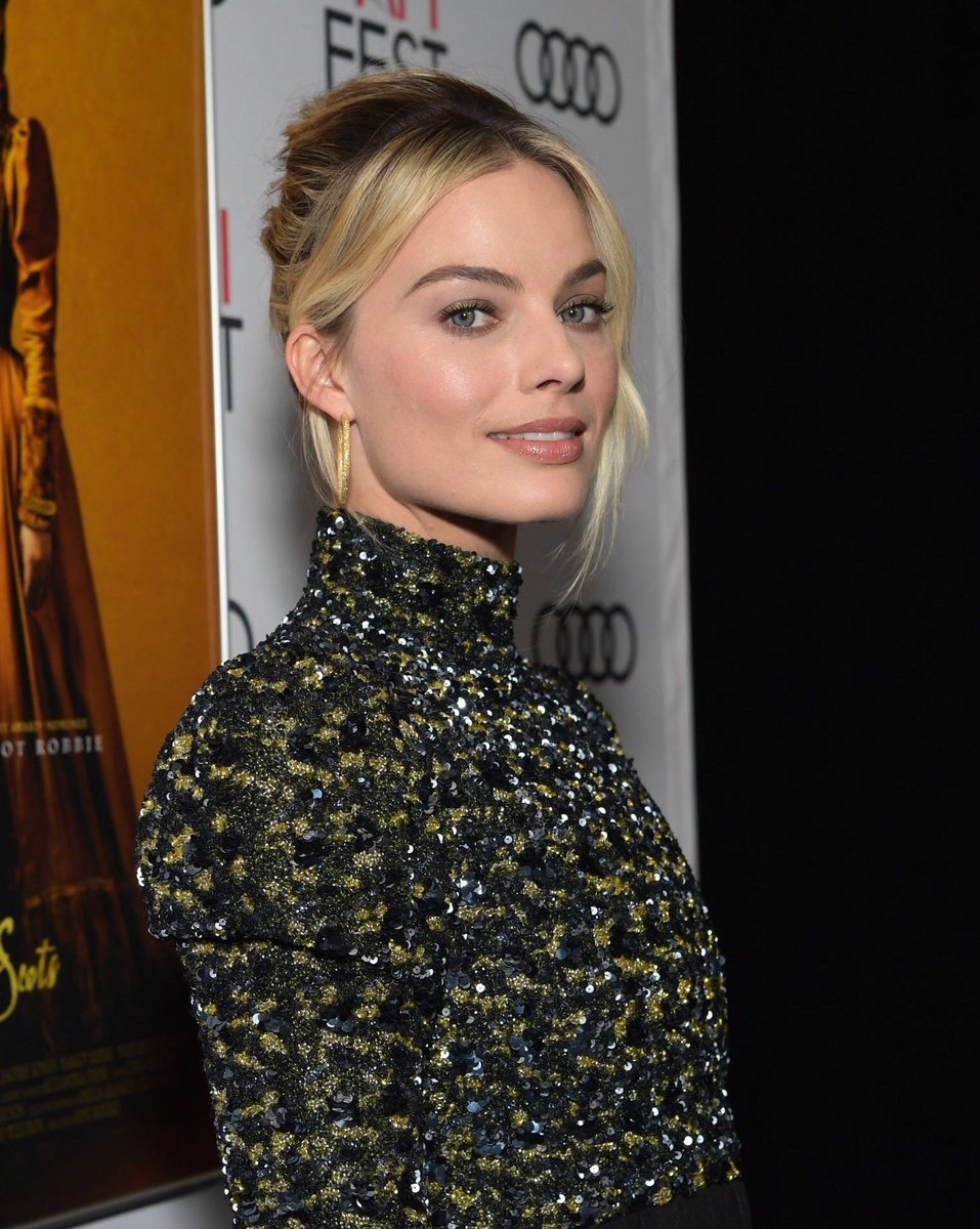Актриса Марго Робби облачилась в роскошное черно-золотое платье для премьеры фильма «Две королевы» на AVI Fest.