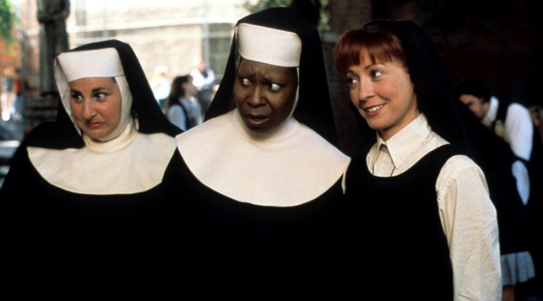 Напомним, в центре сюжета фильма «Сестричка, действуй!» оказывается певица Делорис Ван Картье (Голдберг), которая становится свидетельницей убийства. Чтобы защитить женщину, полиция прячет ее в монастырь. Там она уже становится сестрой Мэри Кларенс и под этим именем начинает приобщать монахинь к пению.