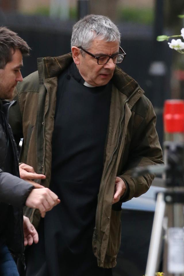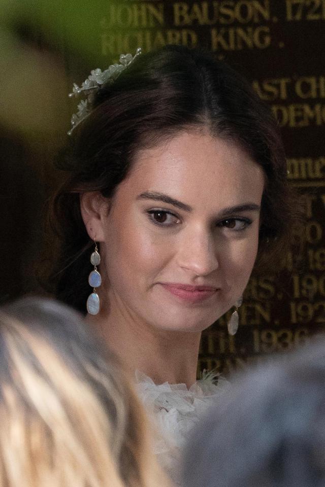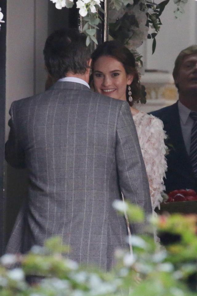 Хью Грант, Лили Джеймс и Роуэн Аткинсон попали в объективы фотокамеры во время съемок короткометражного сиквела культовой комедии 1994 года «Четыре свадьбы и одни похороны».